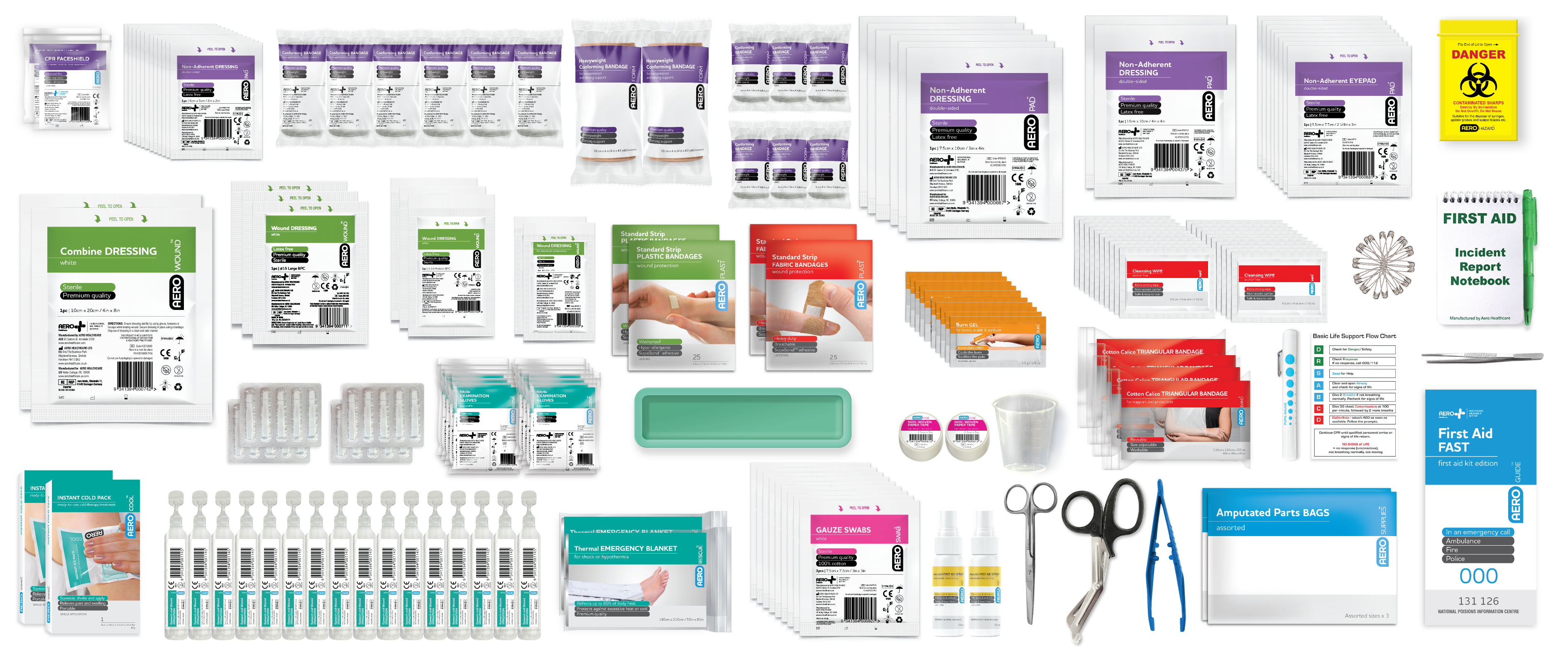This kit range comprehensively meets the standard workplace regulations across all states and territories, ensuring maximum duty of care to all workers. Instant response to all nature of injuries is aided by the range of cases available, which are designed to store and present the substantial quantity of product in the most efficient and accessible way.